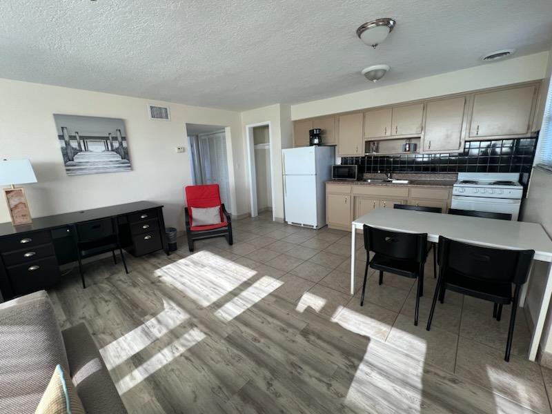 Family rooms offers Queen Bed in a separate bedroom, and Queen Bed in a living area. Living area also includes Queen Sofa Sleeper, Table and Four Chairs and a Full Kitchen. Kitchen amenities: Full Size Fridge, Oven/Stove, Microwave or Cooktop, Coffee Maker, Toaster, Cookware, Utensils and Serving Dishes. Family room also includes two 32″ Flat Screen TV’s. All of our rooms include free Wi-Fi.
